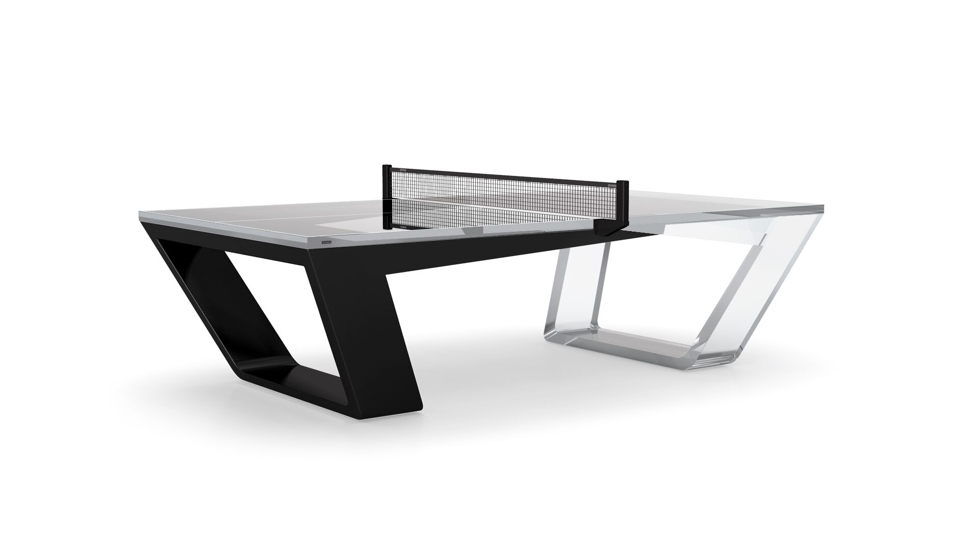 The Avettore Lucite Ping Pong Table features sleek lines and aerodynamic curves inspired by supersonic jets, embodying effortless elegance. Its fluid lines and visual contours create a stunningly uncomplicated design, making it the ultimate expression of 'less is more.'