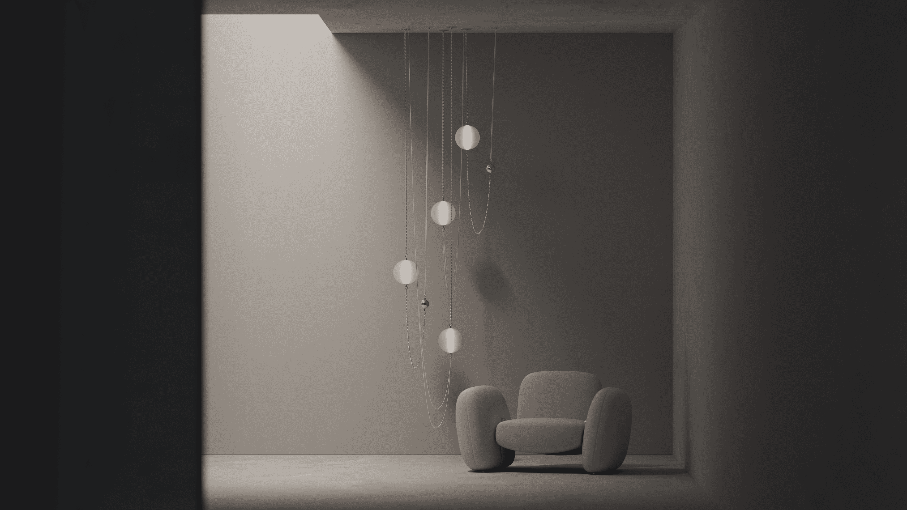 Ethereal in presence, the Etere Pendants suspend glowing orbs in delicate balance. Each sphere drifts weightlessly along fine chains, an illusion of levitation anchored by meticulous craftsmanship. Available in a selection of customizable metal finishes, the design transforms light into a celestial statement, tailored to complement any interior with bold, modern elegance.