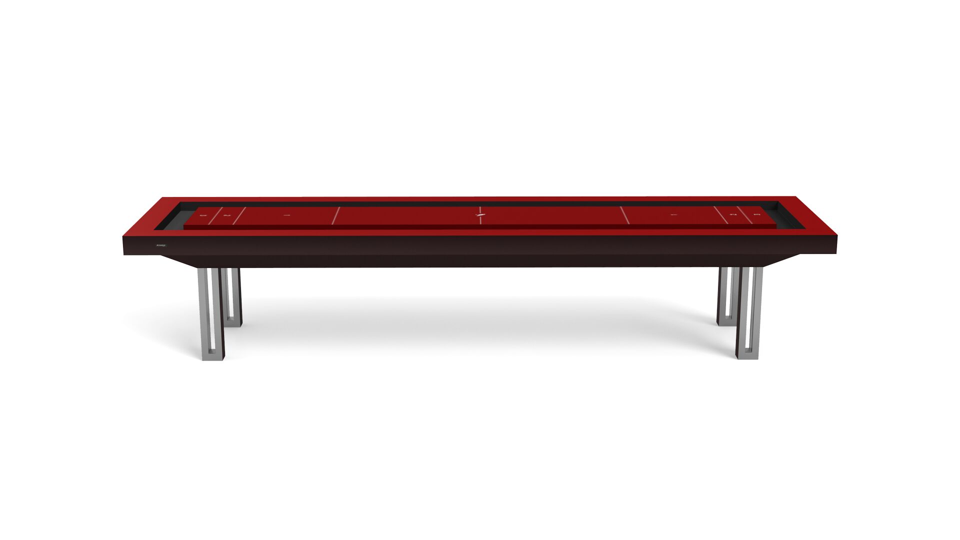 Our shuffleboard tables feature a professional grade plank available in custom colors, climatic adjusters, and optional abacus scoring units. Tables are handcrafted with the finest woods and finishes, ardently built one at a time to the specifications of their visionary. Tables in Executive Shuffleboard style over 16’ long need additional legs.