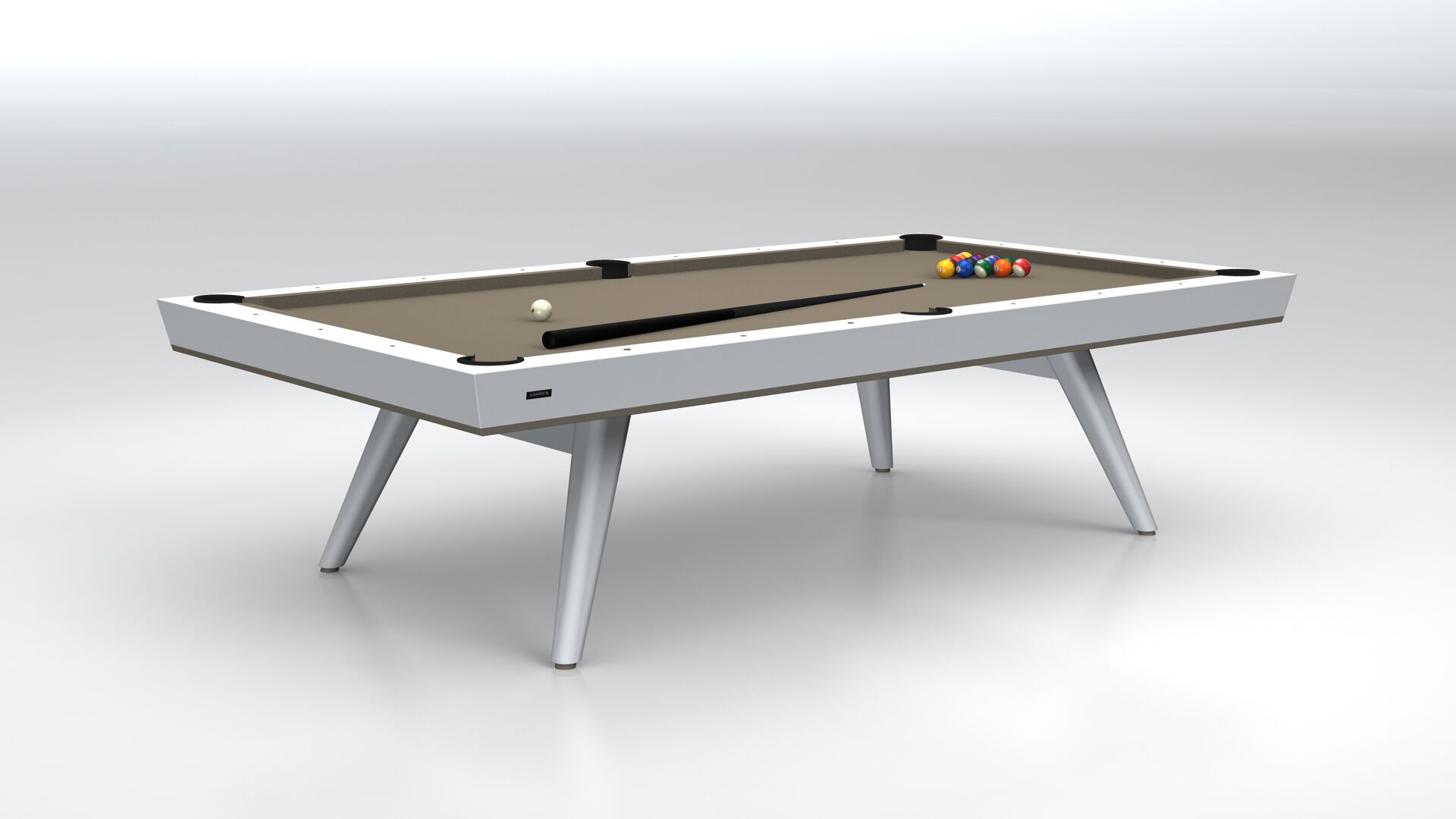 4 black fiberglass cues, box of chalk to match felt, black triangle, set of premium Aramith pool balls, black bridgehead, rail brush and cloth brush