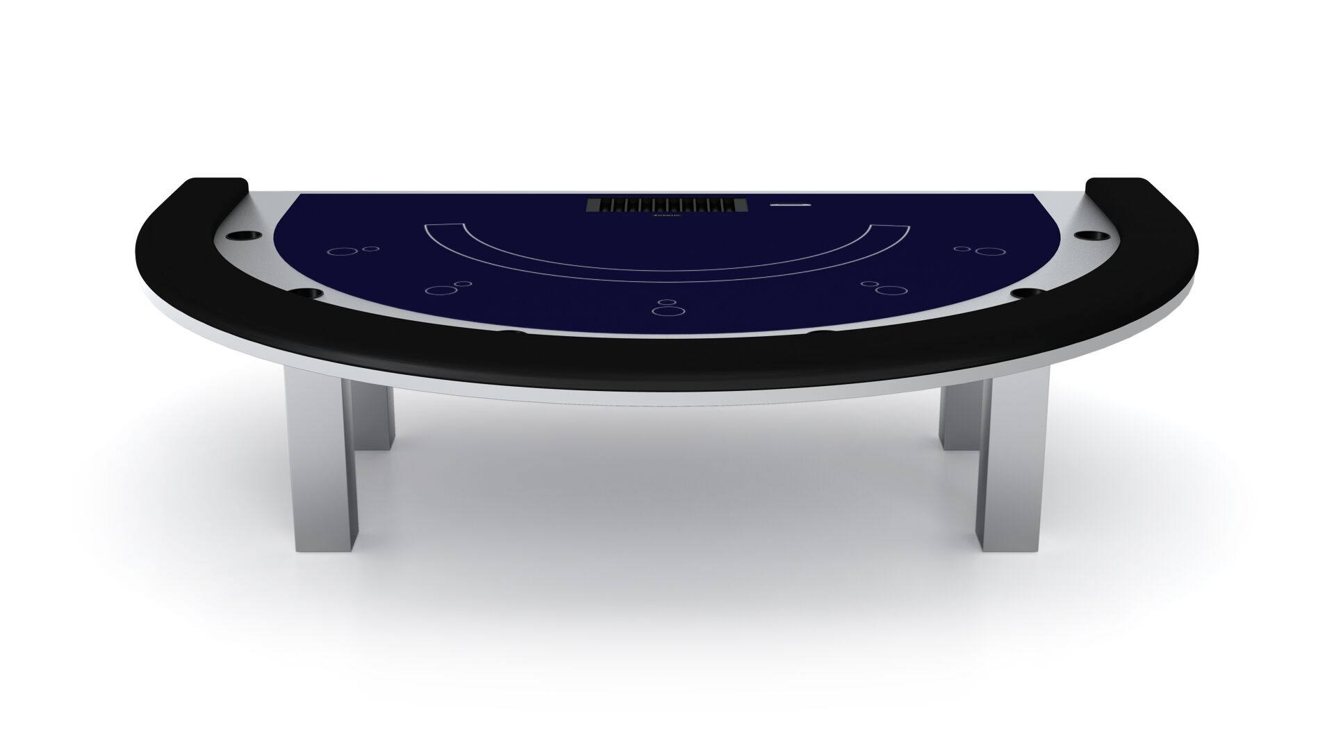 Our blackjack tables feature a customizable professional grade gaming suede playing surface, leather top for ultimate sophistication and comfort, and optional card counters/shufflers. Tables are handcrafted with the finest woods and finishes, ardently built one at a time to the specifications of their visionary.