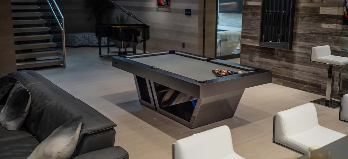 Our pool tables feature superior tournament grade Simonis cloth, leather drop pockets, Artemis K66 profile cushions, and 3 piece Brazilian slates. Tables are handcrafted with the finest woods and finishes, ardently built one at a time to the specifications of their visionary. All 11 Ravens pool tables can easily convert to dining and/or ping pong with our conversion tops. The tops are built in two-halves for ease of handling. Both the pool table and the tops are completely customizable to complement your decor. Comfort is a priority in dining, and 11 Ravens has the capability to modify base dimensions to allow for ample leg room.